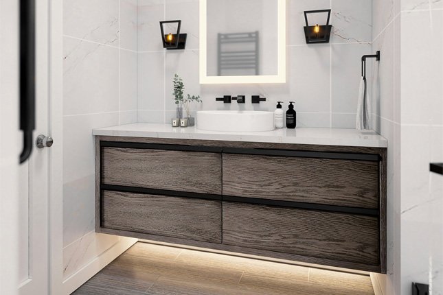 All of our bathroom cabinetry is built using moisture-resistant panels and quality finishes to ensure durability in damp conditions.
